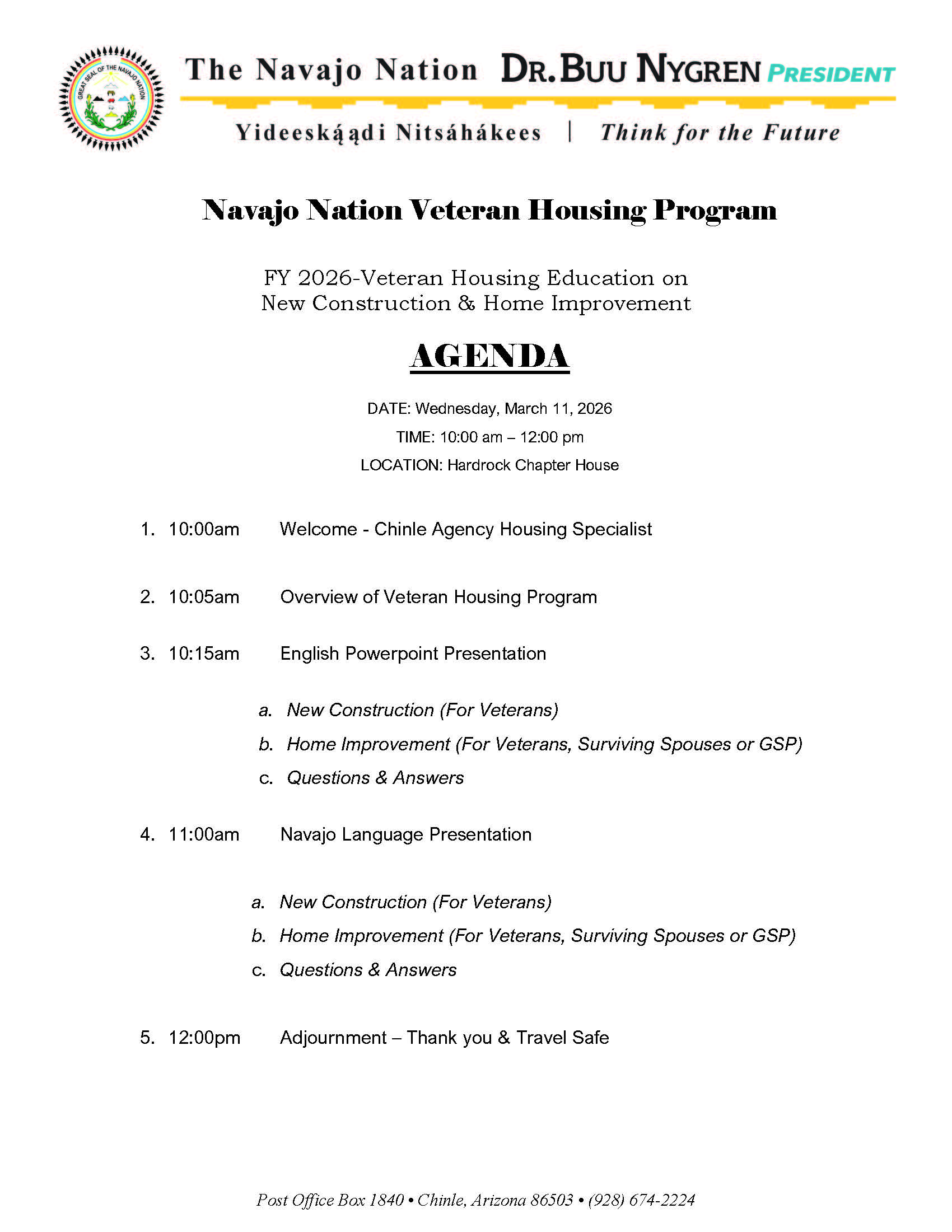March 1, 2026, 1 PM, at Hardrock Chapter House